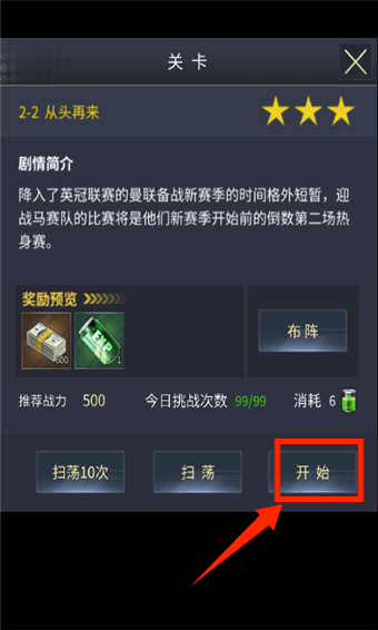 2、上阵好你的角色后,点击开始即可进入闯关。