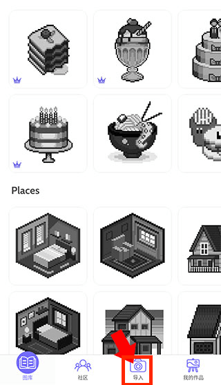 1、进入游戏后选择心仪图案,未上色的像素画布清晰呈现,浏览分类图库,找到最想填色的那张图片开始创作。