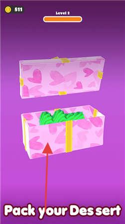 1、在“PackyourDessert”环节,将甜点(绿色物品)装入粉色礼盒,完成包装。