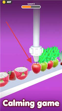 2、进入“Calminggame”阶段,用机器加工传送带上的水果(苹果等),获取食材。
