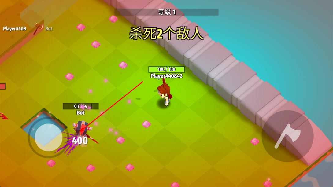 1、进入游戏后选择角色,在多人联机界面匹配对手,操控角色移动并挥动战斧,通过碰撞攻击击败场上其他玩家。