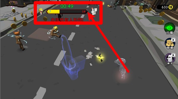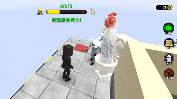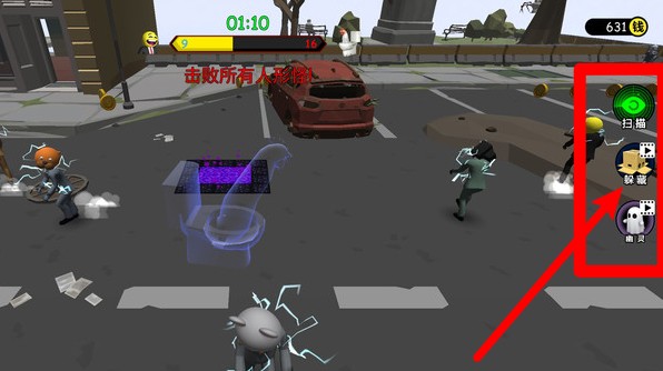 2.右侧技能按钮可触发扫描、变装与伪装等特殊技能,每项技能冷却不同,合理使用能大幅提升生存几率。