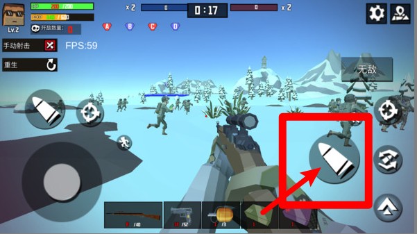 1.点击右侧大子弹图标可手动开火,配合瞄准可精准射击远处敌人,提升命中率和击杀效率。
