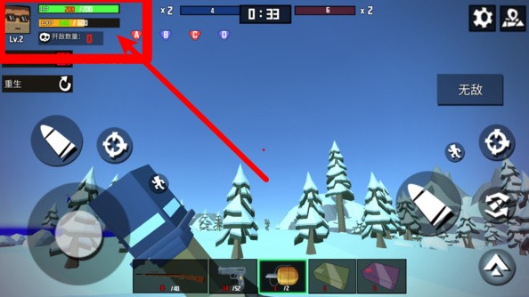 2.左上角角色信息栏显示当前等级、生命值、护盾值与击杀统计,便于掌握作战状态及时应变。