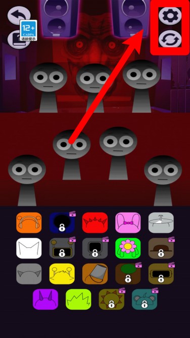 1.右上角按钮为“设置”与“重新开始”,点击齿轮可调整音效与节奏,点击圆箭头可重新开始当前关卡挑战。