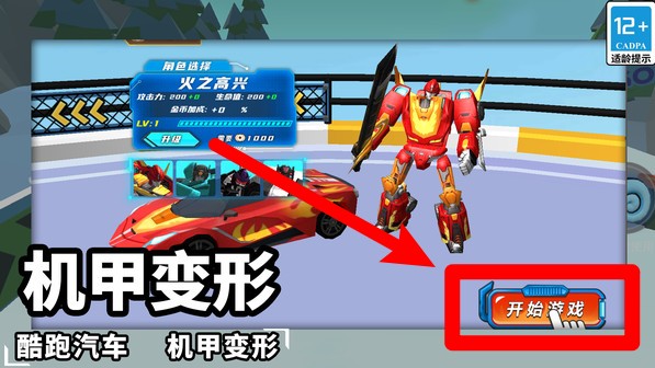1.点击开始游戏按钮后,角色可从赛车形态变形为机甲战士,准备进入热血战斗模式超燃体验。
