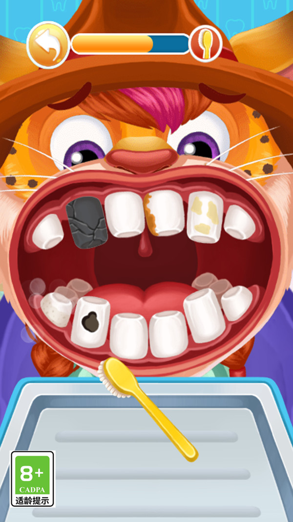 4.互动性强流程:每只动物的反应都独一无二,不同牙齿状况需选择不同工具处理,玩法更有趣过程也更具互动感变化。