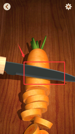 3、点击屏幕就可以操作小刀切萝卜,非常简单。