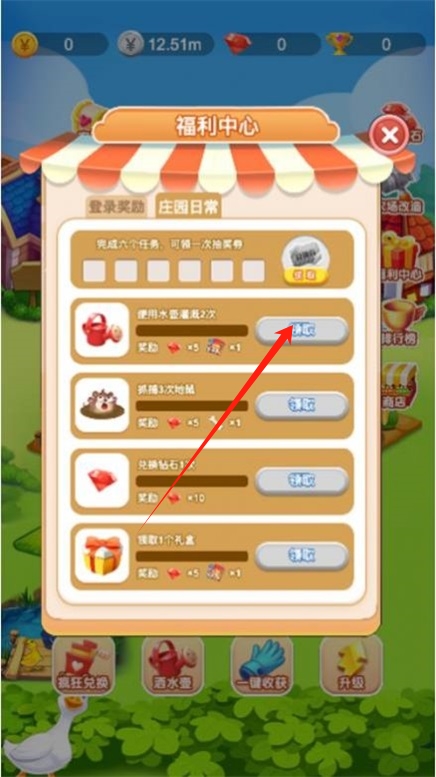 1、点击领取,通过升级设施减少手动操作,利用连续完成高难度操作触发"庄园大师"状态,通过暂停功能调整种植计划。
