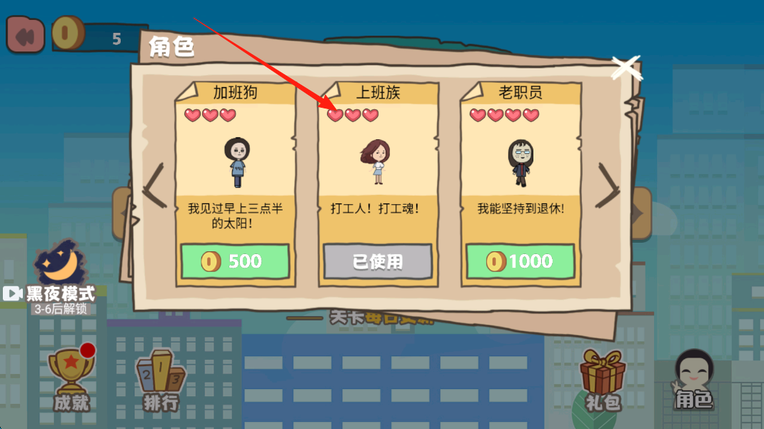 3、积累金币解锁新角色,如用500金币换加班狗,体验不同角色闯关。