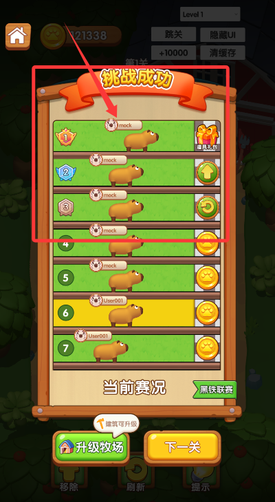 4、生动的动物表情系统增强趣味性,成功消除时动物们会做出各种搞怪反应,不同物种的庆祝动作增添欢乐氛围。