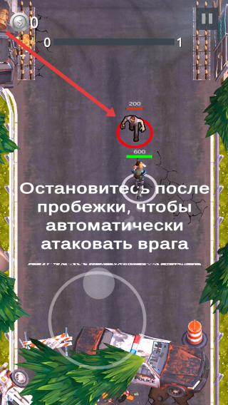 3、遇敌人时,按指引“Остановитесь-после-пробежки,чтобы-автоматически-атаковать-врага”,停步自动攻击,消灭目标。