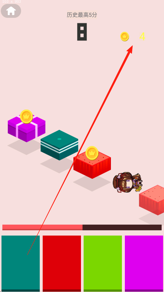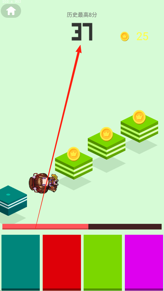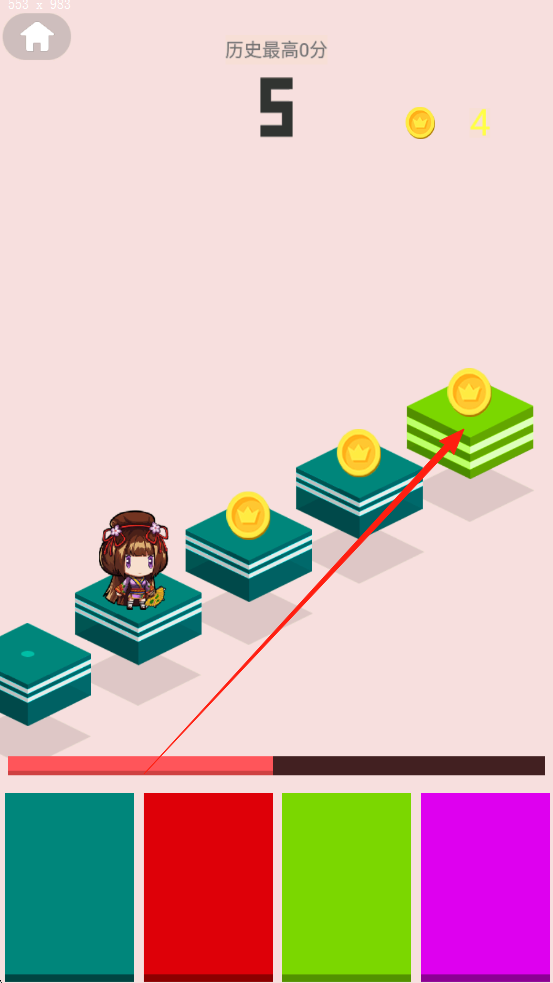 1、优先观察方块排列规律,重点预判颜色变化时机,通过短按实现小跳、长按触发高跳,利用墙壁反弹突破复杂地形。