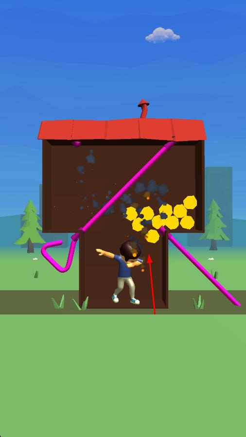 3、点击屏幕拔出目标钢筋,若顺序正确,角色将沿路径收集金币,若误触危险钢筋(如提前释放炸弹),则导致角色死亡,需重新挑战。
