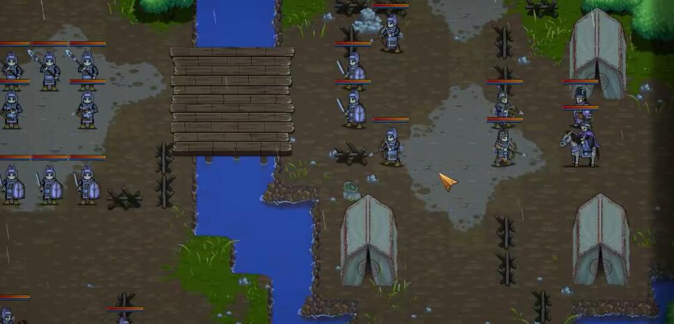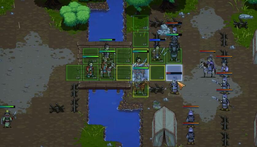 1、障碍交互:栅栏分割战场、河流限制移动(必走桥梁),构建“地形利用→路径规划”策略维度,考验空间战术思维。