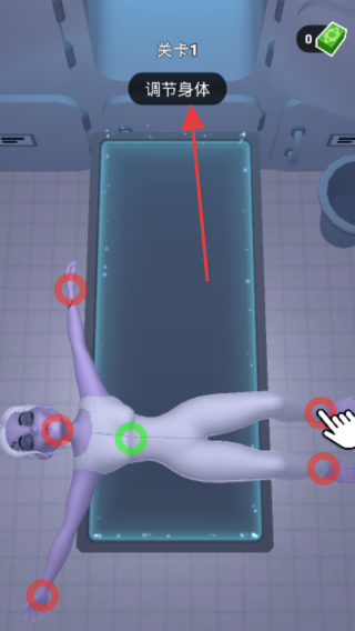 1、关卡1“调节身体”,点击红色圈出的身体部位,按提示调整(如拖动、旋转),让绿色区域达标,完成挑战。