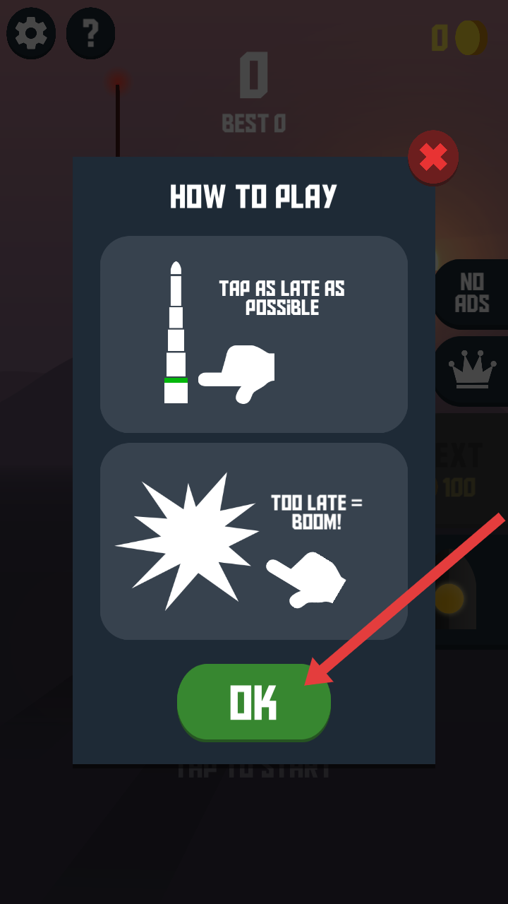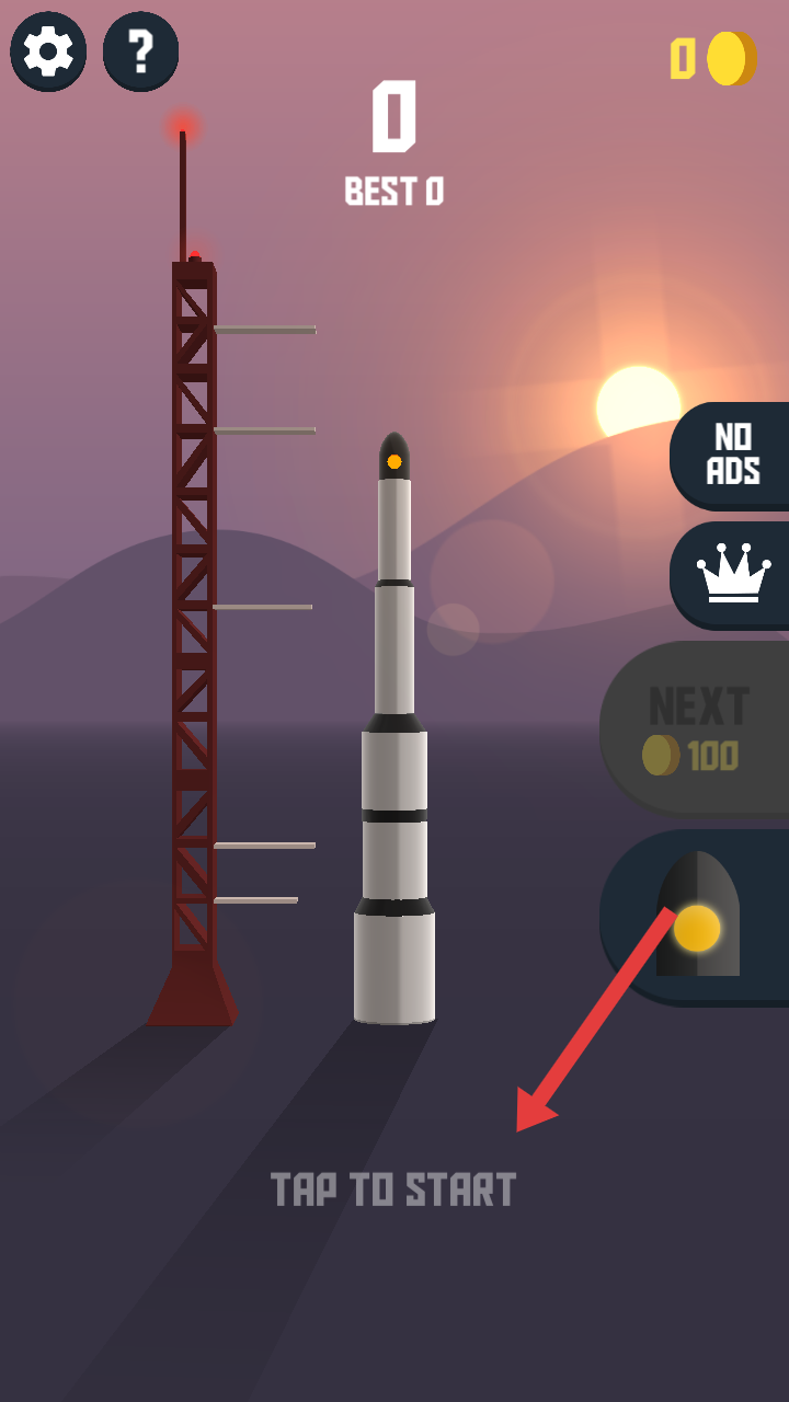 2、来到火箭发射页,操控者需要点击底部【TAPTOSTART】的按钮,启动火箭开始游戏挑战。