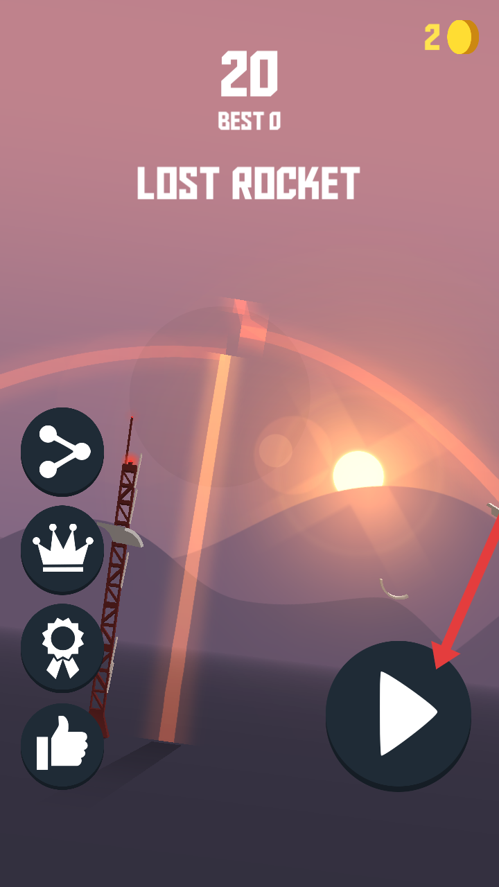 3、火箭坠落结算页,需要点击右侧播放按钮,重新开始游戏,尝试获得更高的分数。