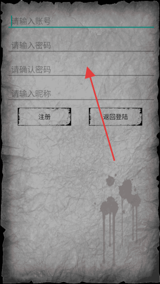 2、在登录页,若没账号,点“注册”,按指引填“账号、密码、确认密码、昵称”,完成注册,创建角色。