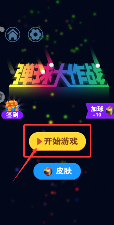 1、启动游戏,需调整发射角度将弹球弹出,精准计算反弹轨迹是通关的关键技巧。