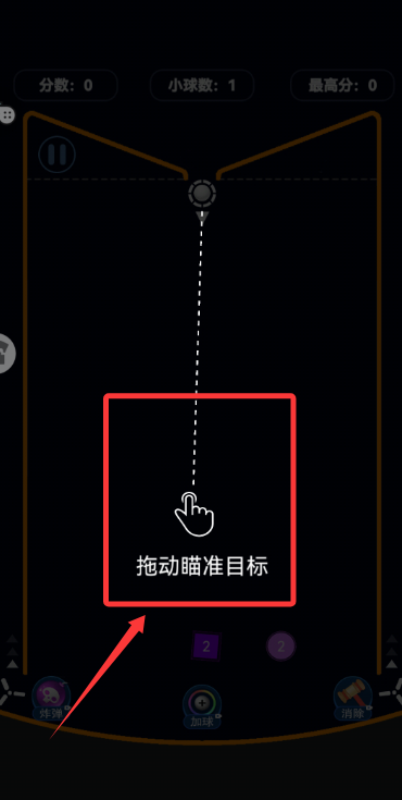 2、点击屏幕拖动瞄准目标,找到合适的方向后将弹球击中更多的砖块。