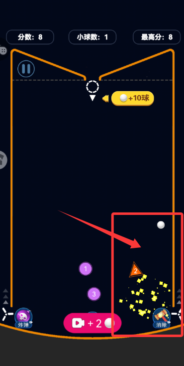 3、丰富的弹球类型引人入胜,每种弹球都有独特属性和特效,需要根据关卡特点灵活选择,使用时机需要规划好。