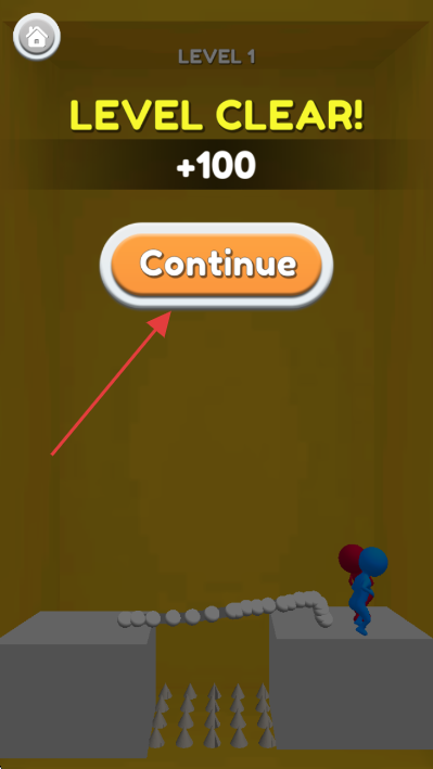 3、关卡通关后,点击橙色【Continue】按钮,推进游戏。