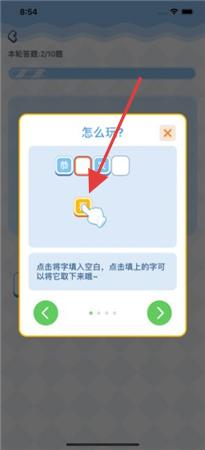 1、进入“怎么玩”引导,学习规则,填空时拖字入空、选择题点正确选项。