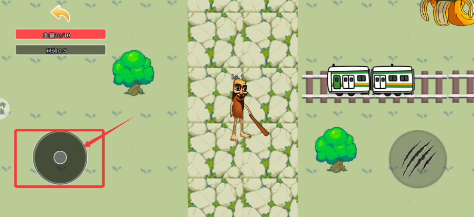 2、通过虚拟摇杆操控角色移动,在场景中搜寻同类生物进行融合。