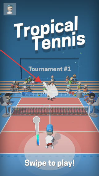 1、进入【TropicalTennis】,点击【Tournament#1】,按【Swipetoplay!】提示,滑动屏幕,开始网球赛事。