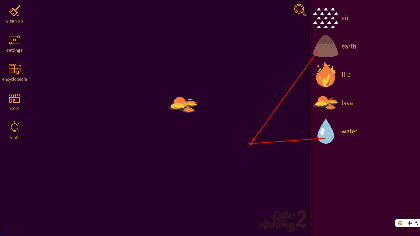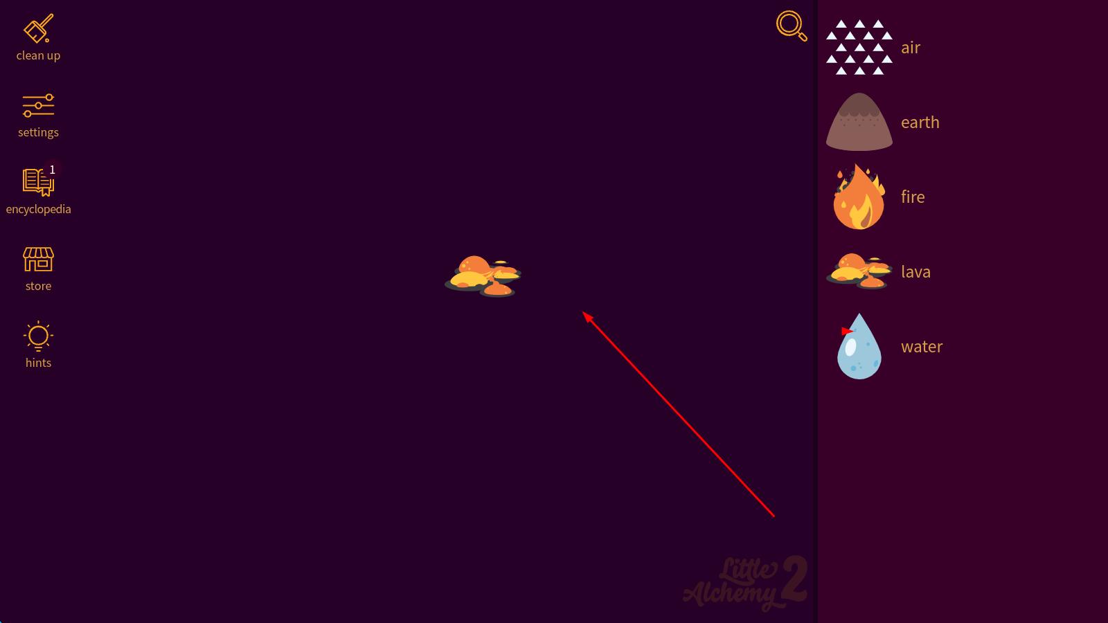 1、进入游戏先从基础元素如空气、水、火、土开始,通过拖拽两种元素到一起,尝试合成基础物品,如“空气+火=能量”。