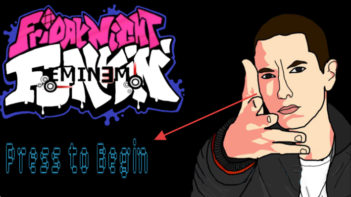 1、点击界面蓝色文字【Press to Begin】,启动【Friday Night Funkin】游戏。