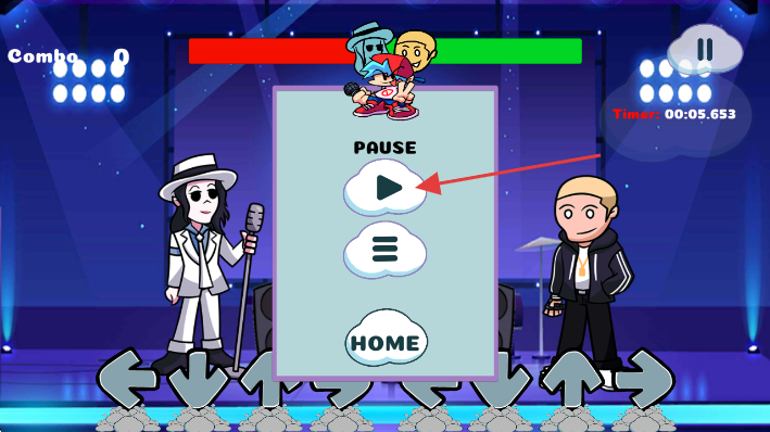 3、点击暂停弹窗中【PAUSE】下方的播放按钮,继续当前游戏对局。