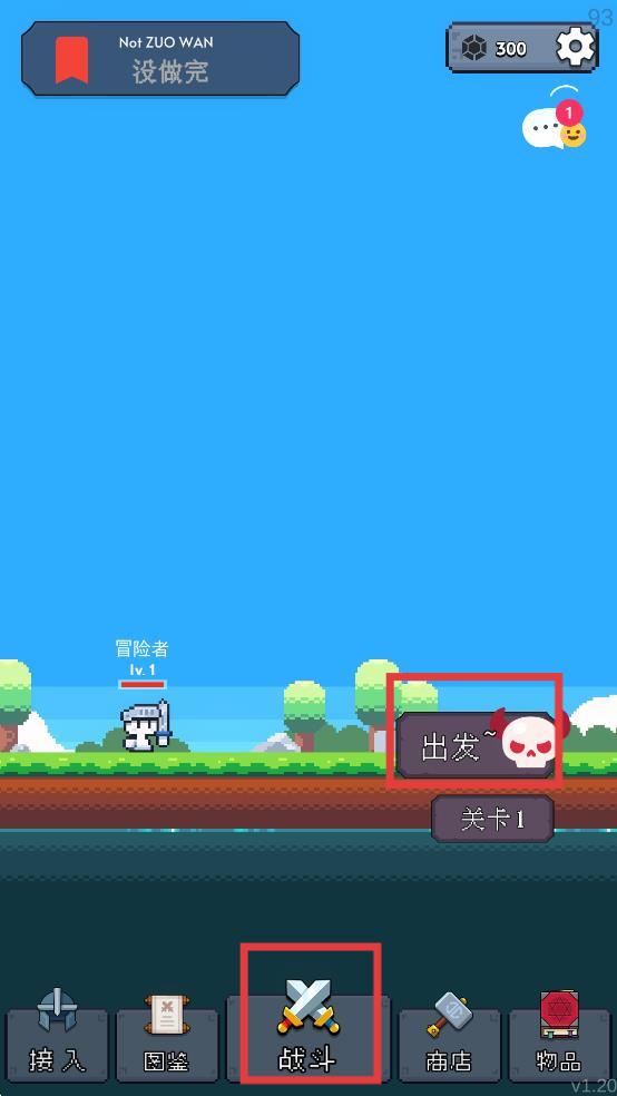 1、下载安装完成之后进入游戏,点击下方的战斗界面,再点击出发按钮,即可开始游玩。