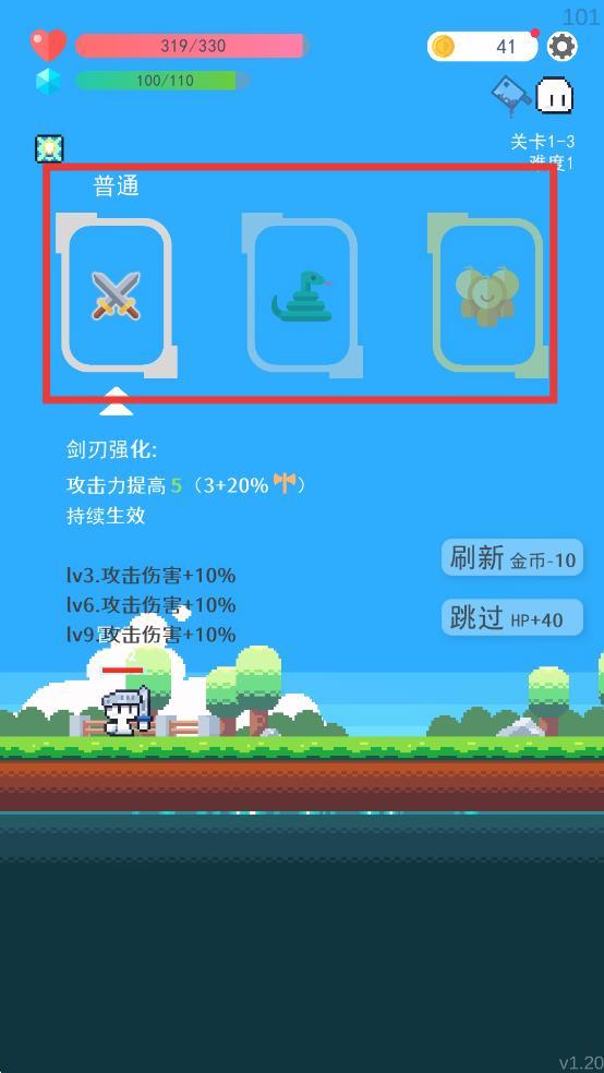 冒险者的rogue之旅是一款竖版闯关冒险作品,玩法轻松有趣,玩家在关卡中战斗消灭敌人,获取掉落装备提升战斗力,需在每个关卡合理搭配技能作战,开始冒险之后,可选择战士、法师、召唤师等职业,各职业能力独特、通关方式不同,选角后根据关卡挑战,技能选择影响后续玩法,拥有数百种属性独立的武器装备。