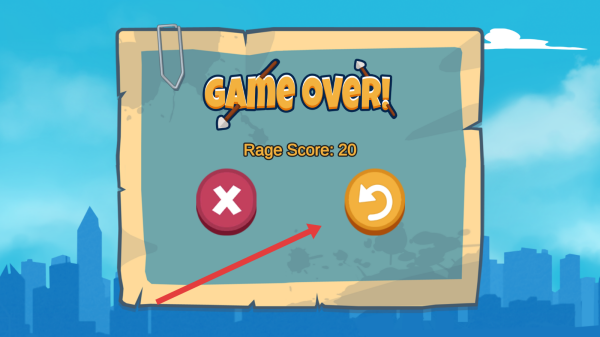 3、若游戏失败,点击屏幕中显示的“重新挑战”按钮,重置游戏场景和进度,重新开始尝试击中游客。