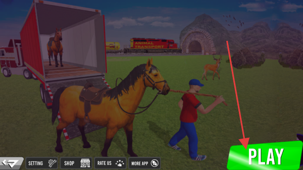 1、首图点【PLAY】,进入游戏,操控人物,准备运输马匹,熟悉卡车、马匹互动。