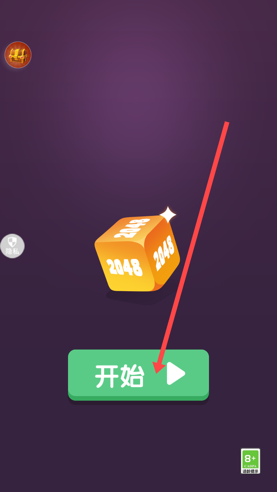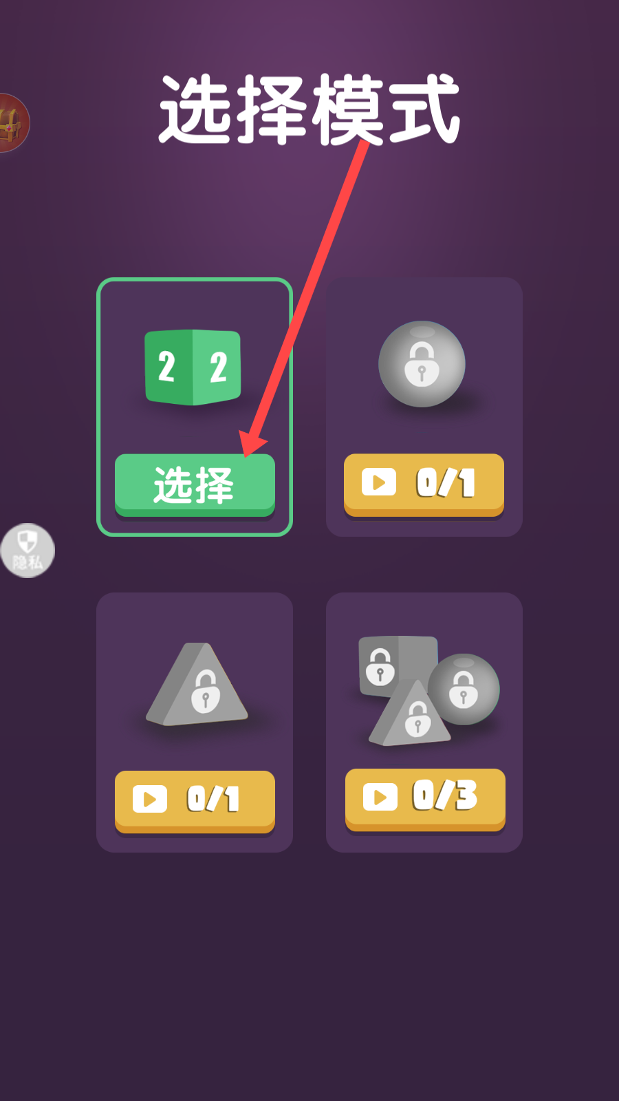 1、点“开始”进入游戏,选“2×2”模式(绿色方块),熟悉基础合并规则。