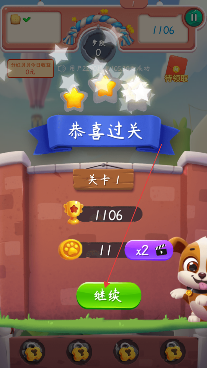 3、关卡任务红包获取:完成每关任务可获金币与红包,任务类型多样,如消除指定数量方块、达到一定分数等,按任务要求策略消除,收获奖励。