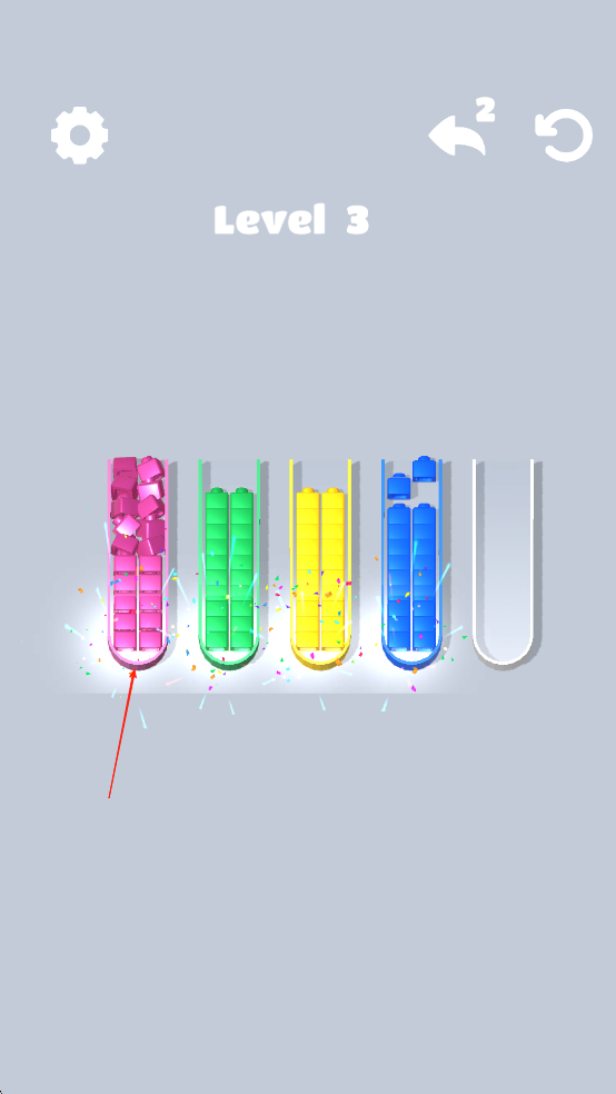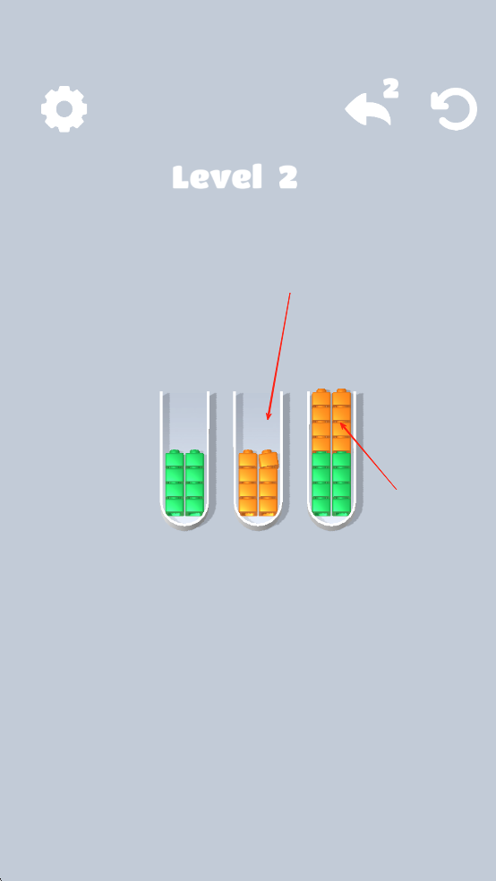 1、进入游戏后查看关卡目标,点击选择试管中的方块进行移动,将相同颜色方块按要求堆叠在指定试管内。