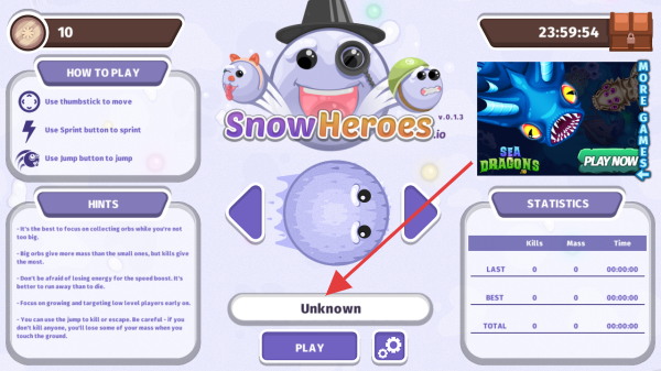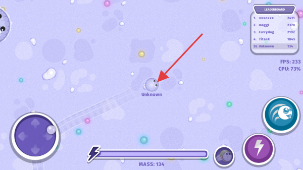 3、游戏中,控【Unknown】角色,吃光点增质量,躲大球,借技能,争取上榜【LEADERBOARD】。