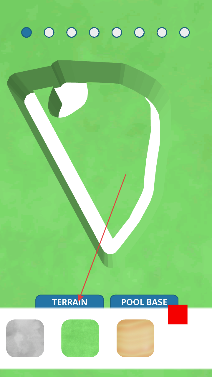 2、进入地形选择,点击“TERRAIN”等选项,搭配“POOLBASE”,构建液体流动的环境。