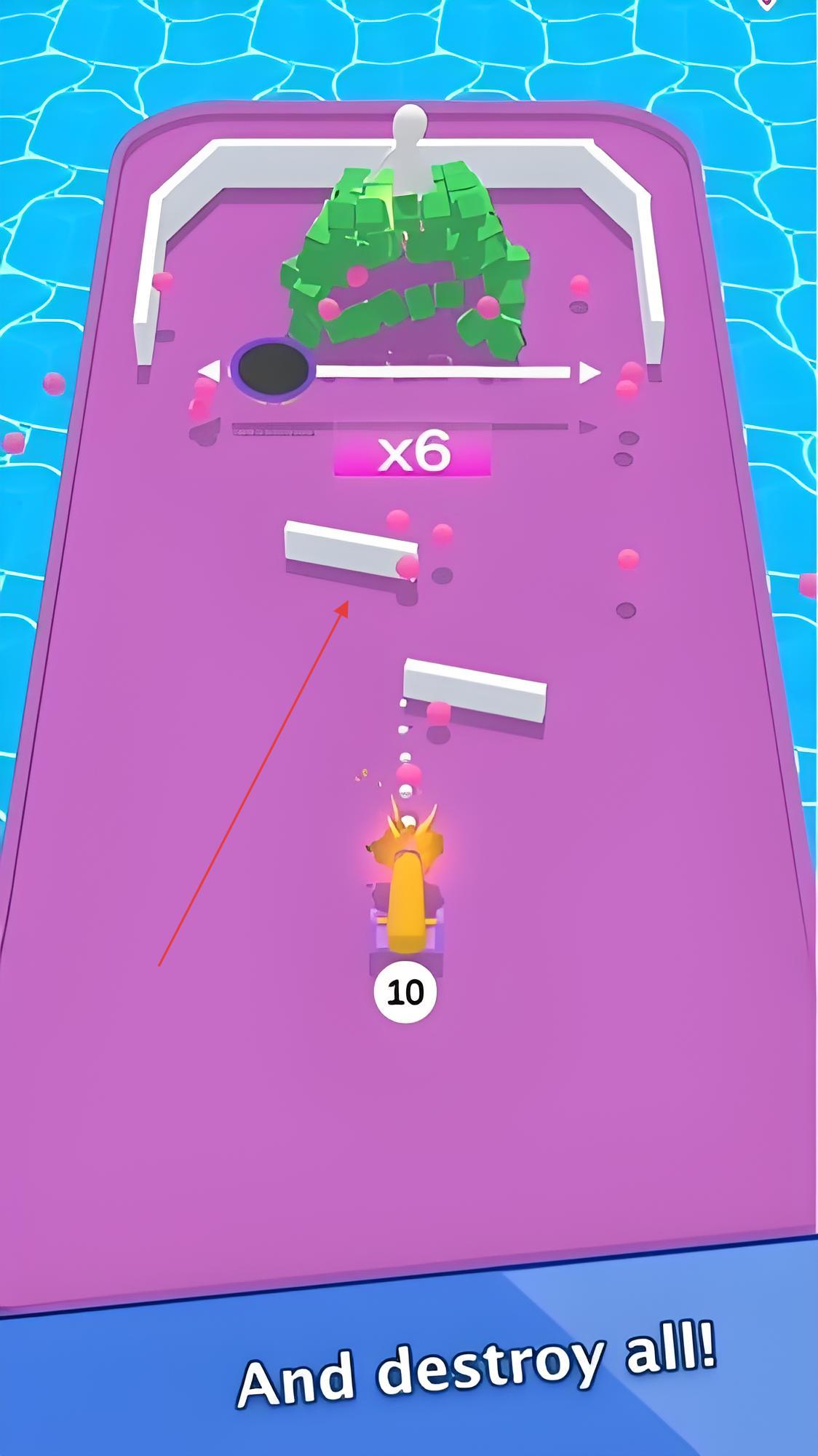 1、进入游戏后滑动屏幕调整弹球发射角度,点击屏幕蓄力控制发射力度,瞄准首段障碍物开启闯关。