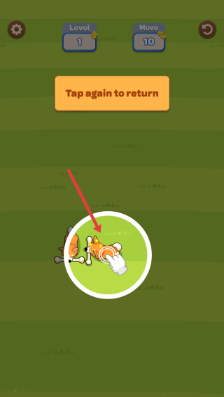 2、再次点击(Tap again to return),让小狗回到原位置或完成移动交互。