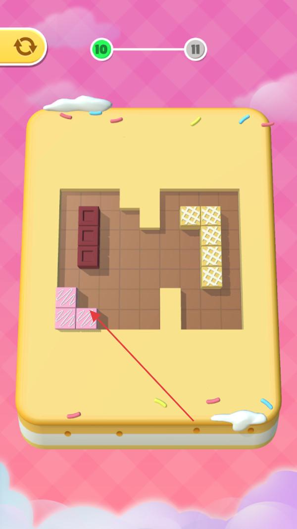 3、创意搭配自由发挥:除了完成关卡目标,玩家还可自由发挥创意,在华夫饼干上设计独特的食物排列图案,用不同口味与形状的食物打造个性化甜点,展现创意制作的无限可能。