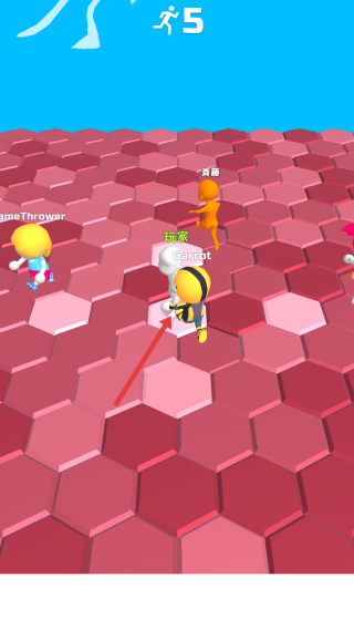3、后续关卡,跟随箭头,与其他玩家(如“玩家Carrot”)竞争,留存到最后获胜。