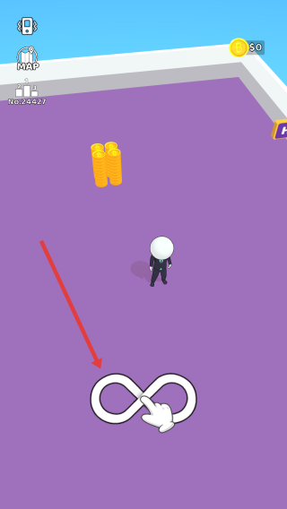 3、继续引导角色,进入箭头指向的绿色围栏区域(含金币和“$0”标识),收集资源,推进游戏进程。