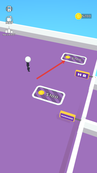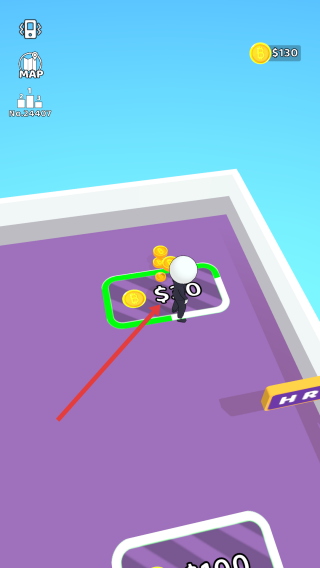 2、角色移动到新区域,按箭头指引,前往带有“$100”标识的地块,获取金币奖励。