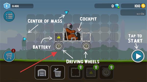 2、车辆自定义与配件系统:解锁10+款卡通载具(如火箭甲壳虫、星际大脚车),收集太空废料打造火焰尾翼、磁力轮毂等。