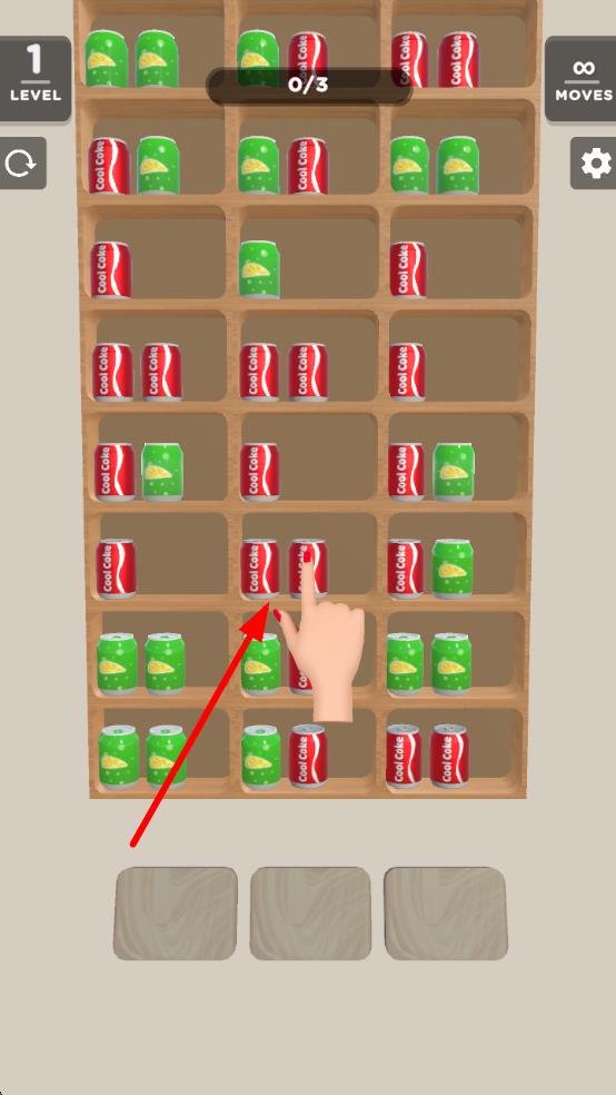 1、进入游戏,面对货架上的商品布局,点击相同商品,开启消除操作。